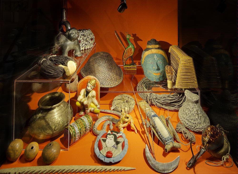 Vanadis återvände med över sjutusen föremål, här ser vi ett litet urval. Variationen är stor: Armringar från Indien, en spjutspets från Eldslandet, ett lerkärl från Peru och stöten av korall från Tahiti som används för att göra maträtten poi av mosad frukt och kokosnöt.