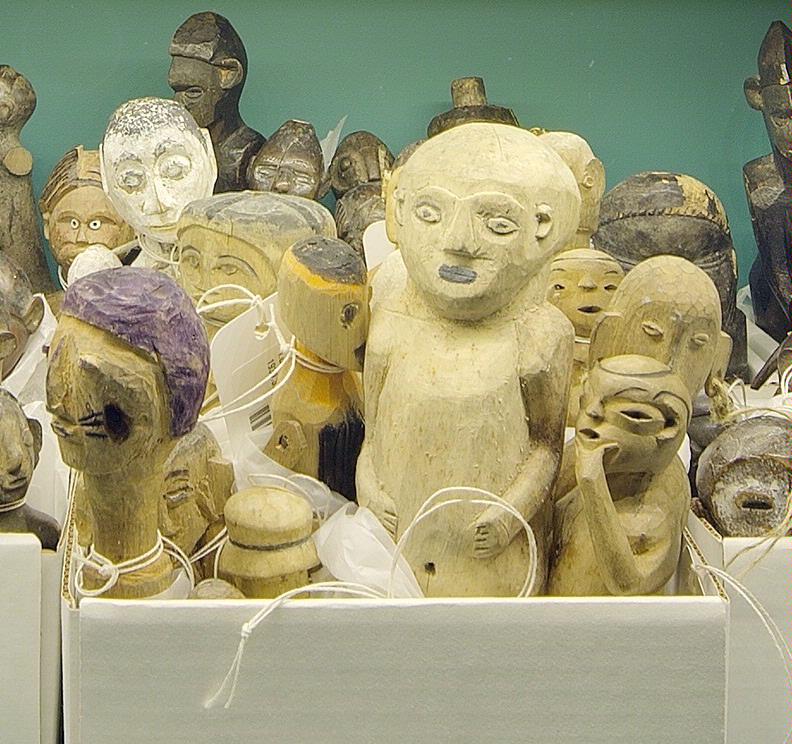 Många av föremålen här har tillverkats för andliga eller rituella ändamål, men långt ifrån alla har verkligen använts för dessa syften. En del har också producerats för att säljas till turister medan några är leksaker. Fyra dockor från ön Borneo i Indonesien och en från Mexiko sägs vara just leksaker.