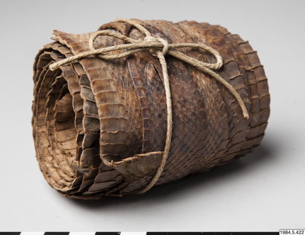 - Hoprullat ormskinn, brunt.