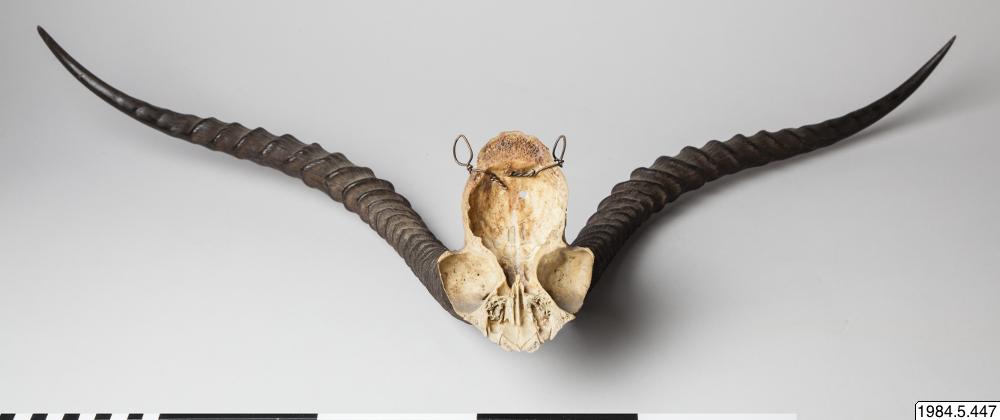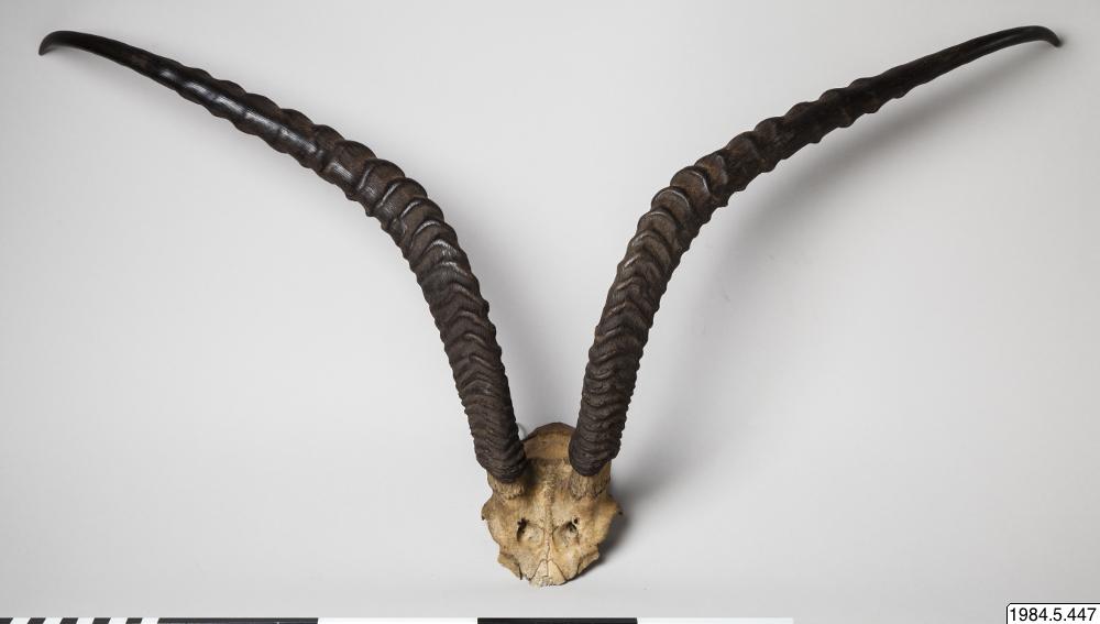 - Kranium med horn. Har troligen varit monterad på en väggplatta.