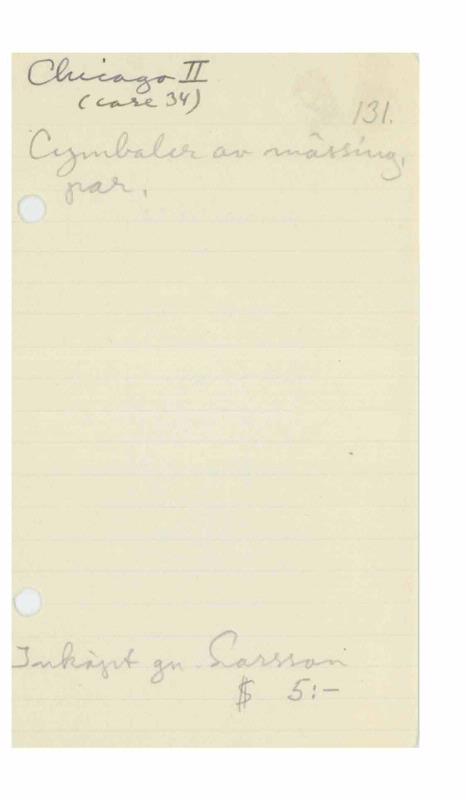 - Katalogkort ur Etnografiska museets arkiv.