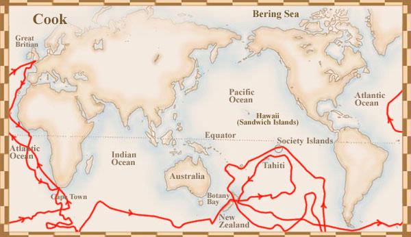 Cook nådde nästan Antarktis, men vände istället norrut till Tahiti för att proviantera. Därefter gjordes ett andra försök att hitta Terra Australis. På hemvägen landsteg han på Vänskapsöarna (Tonga), Påskön, Norfolkön, Nya Kaledonien och Nya Hebriderna. (wikipedia, 2013-10-29)