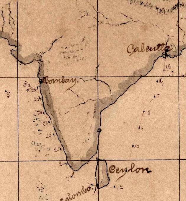 Den 16 december 1884 anlände Vanadis till Indien och Calcutta. Därifrån åkte fartyget vidare till Colombo (Sri Lanka) ca 10 januari och sedan 26 januari till Bombay.