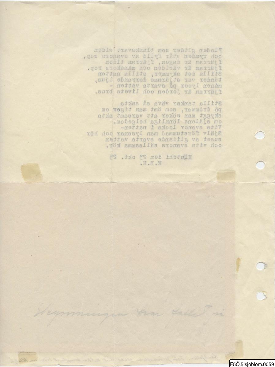 - Dikt av Ester Blenda Nordström, Carl Sjöbloms samling.