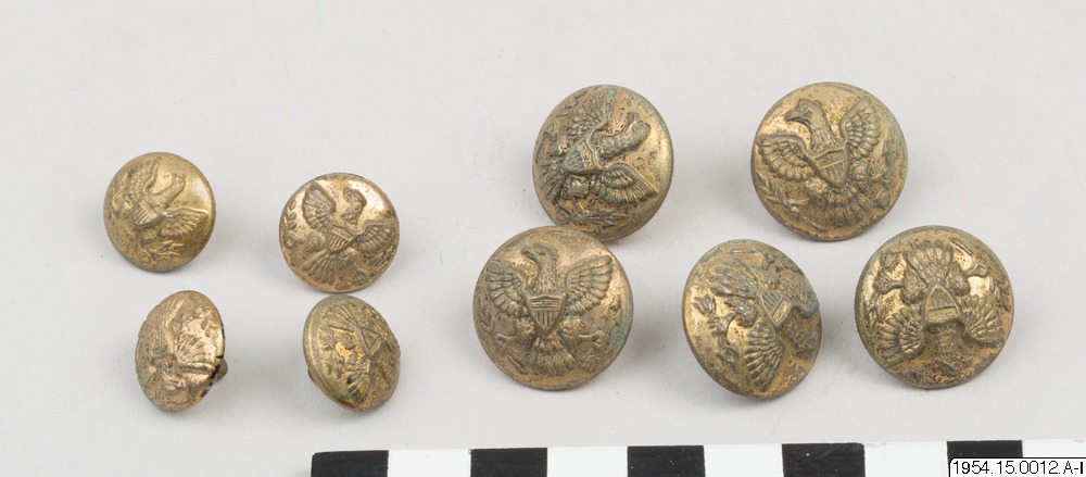 - 9 uniformsknappar, varav 5 större och 4 mindre