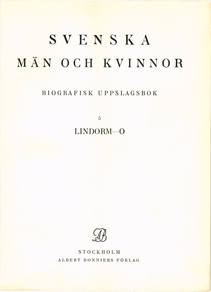 - Dahl, Torsten & Bohman, Nils (red.) (1949). Svenska män och kvinnor: biografisk uppslagsbok. 5 Lindorm-O.