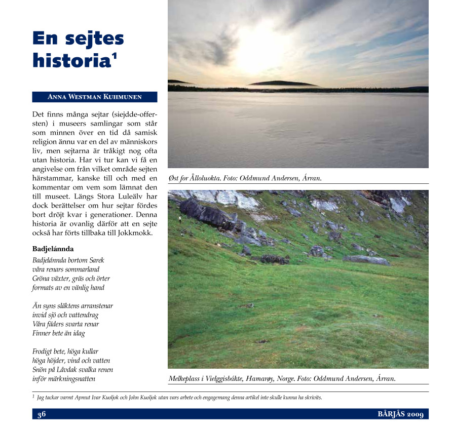 - Westman Kuhmunen, Anna (2009) En sejtes historia. Bårjås. s. 36-43