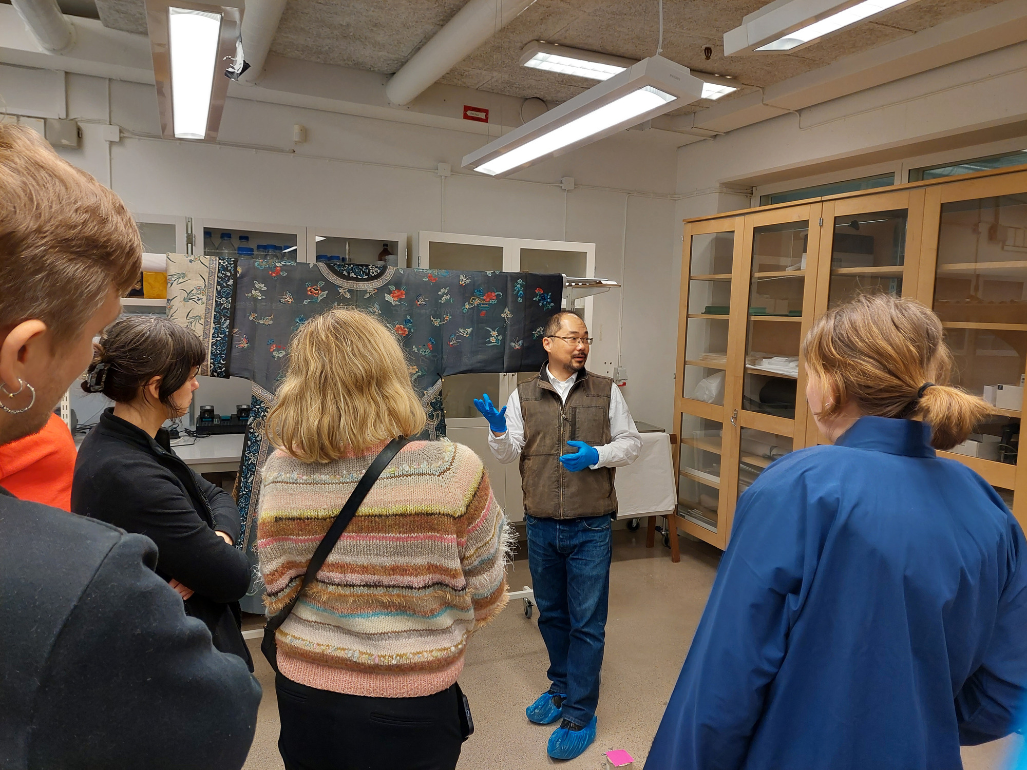 - Qingdynastins kläder - Kläder används ofta som ett sätt att kommunicera din status i livet, och detta gällde också människorna i Qingdynastin (1644-1911). Under studiebesöket tematiserades relationen mellan status och kläder. I samband visades 5 föremål ur samlingen.