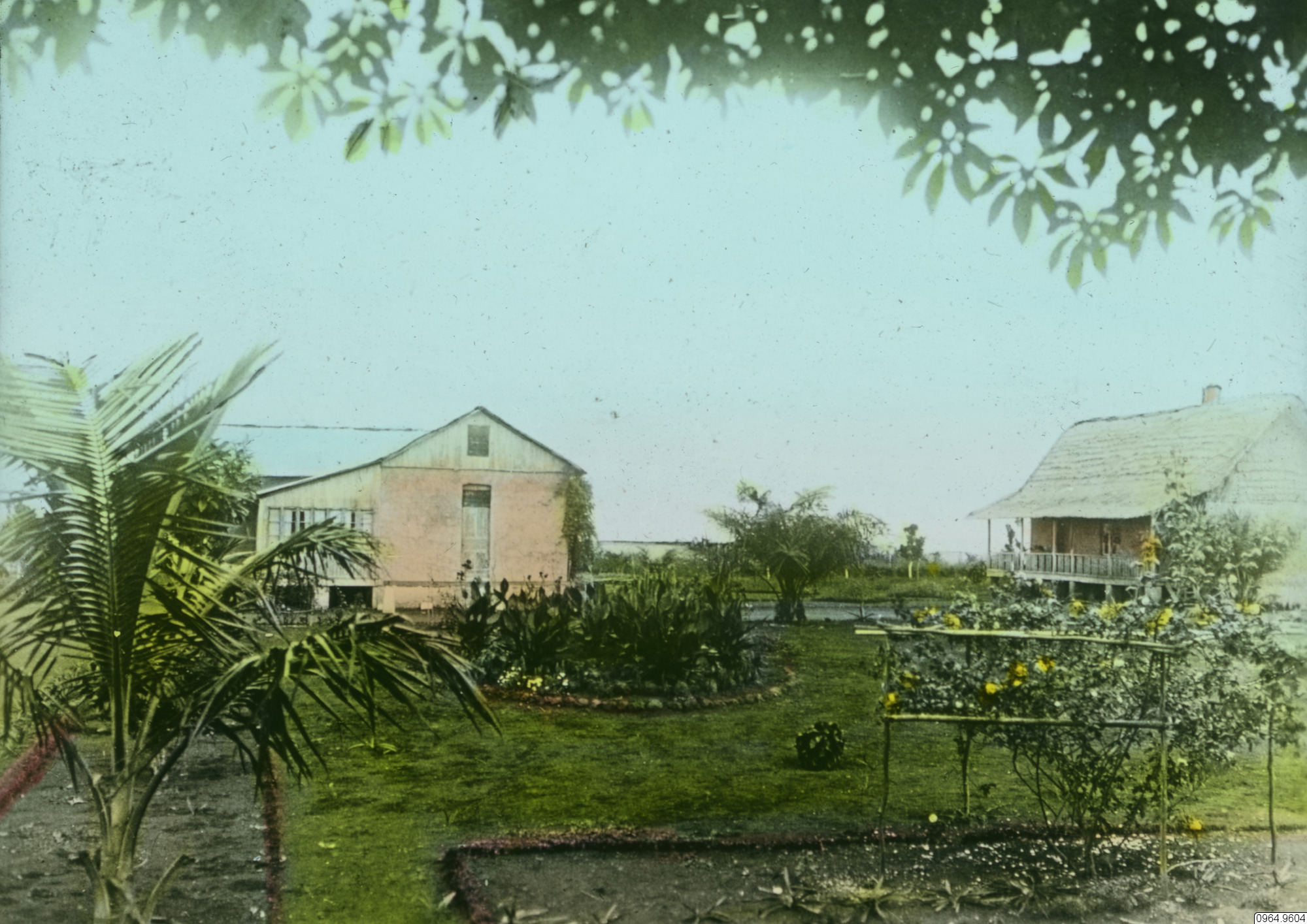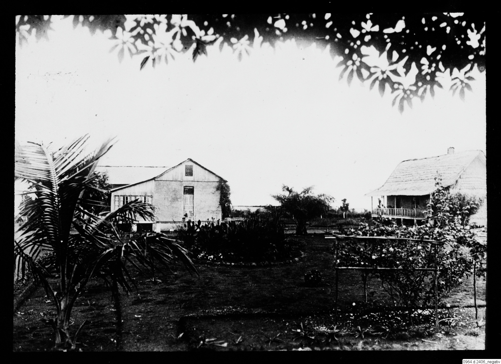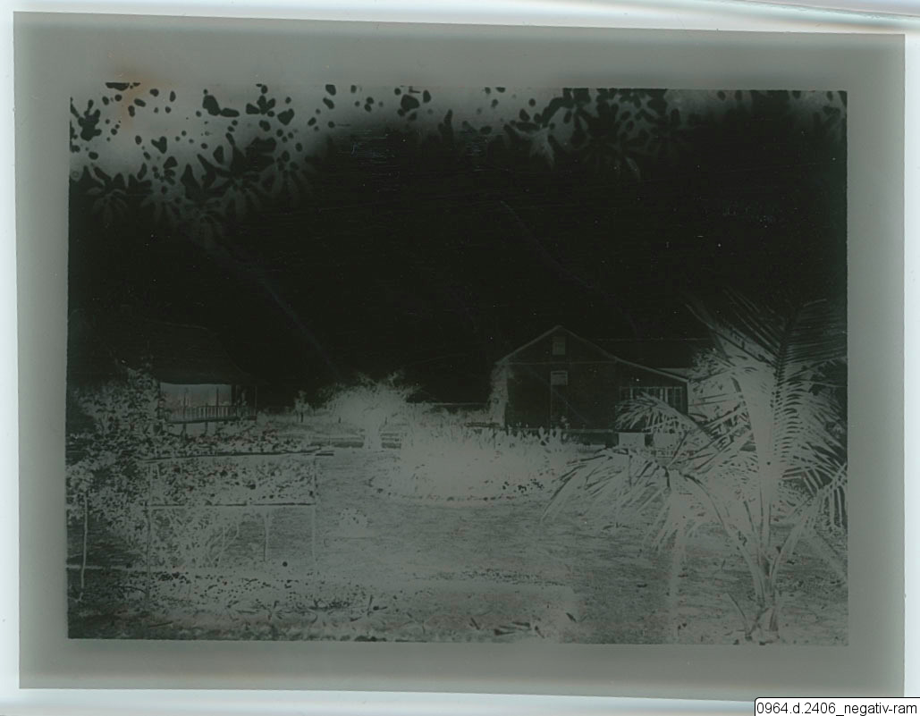 byggnad, hus, missionsstation, kök, träd, personer, trädgård, palm, växter, veranda