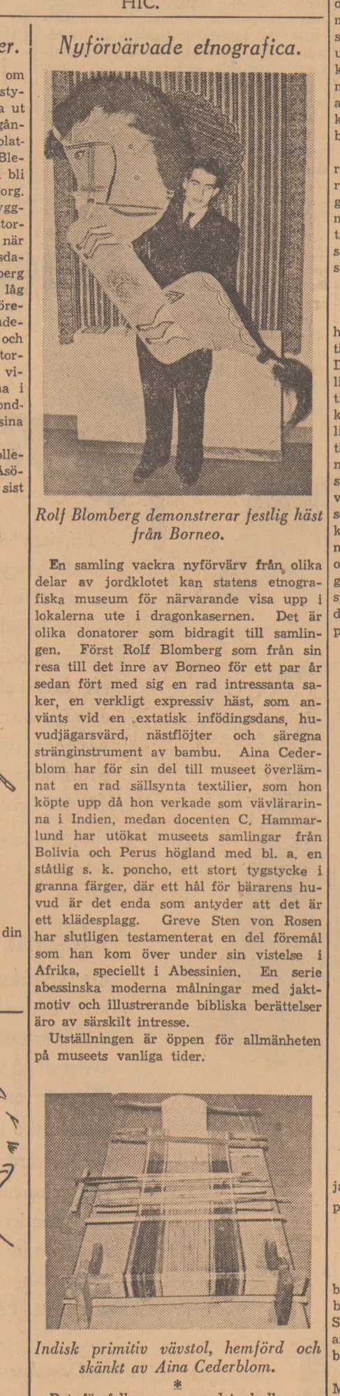Nyförvärvade etnografica (1940) Dagens Nyheter, 1940-09-27 :: 8224221