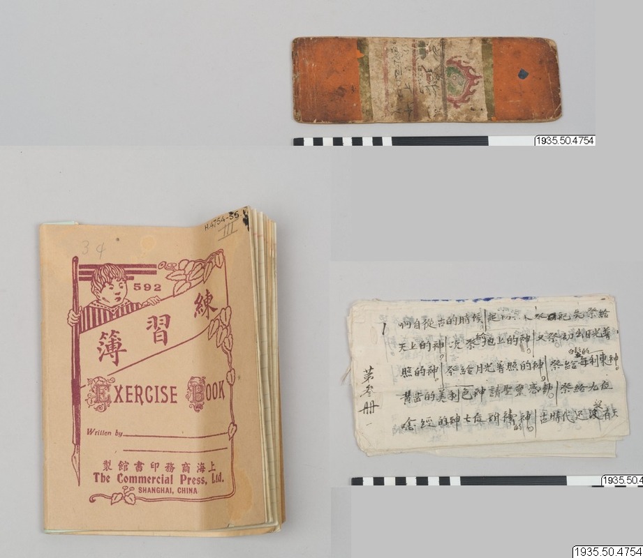 Yngre handskrivna kinesiska översättningar (B och förlaga C). 1935.50.4754 och 1935.50.4755 delar häfte med översättning (4754.B och 4755.B), det är uppmärkta med både H.4754 och H.4755. Förlagan (C) för översättningen var tidigare kopplad till 4755 men Anna Fäldt har identifierat den som tillhörande nr 4754.