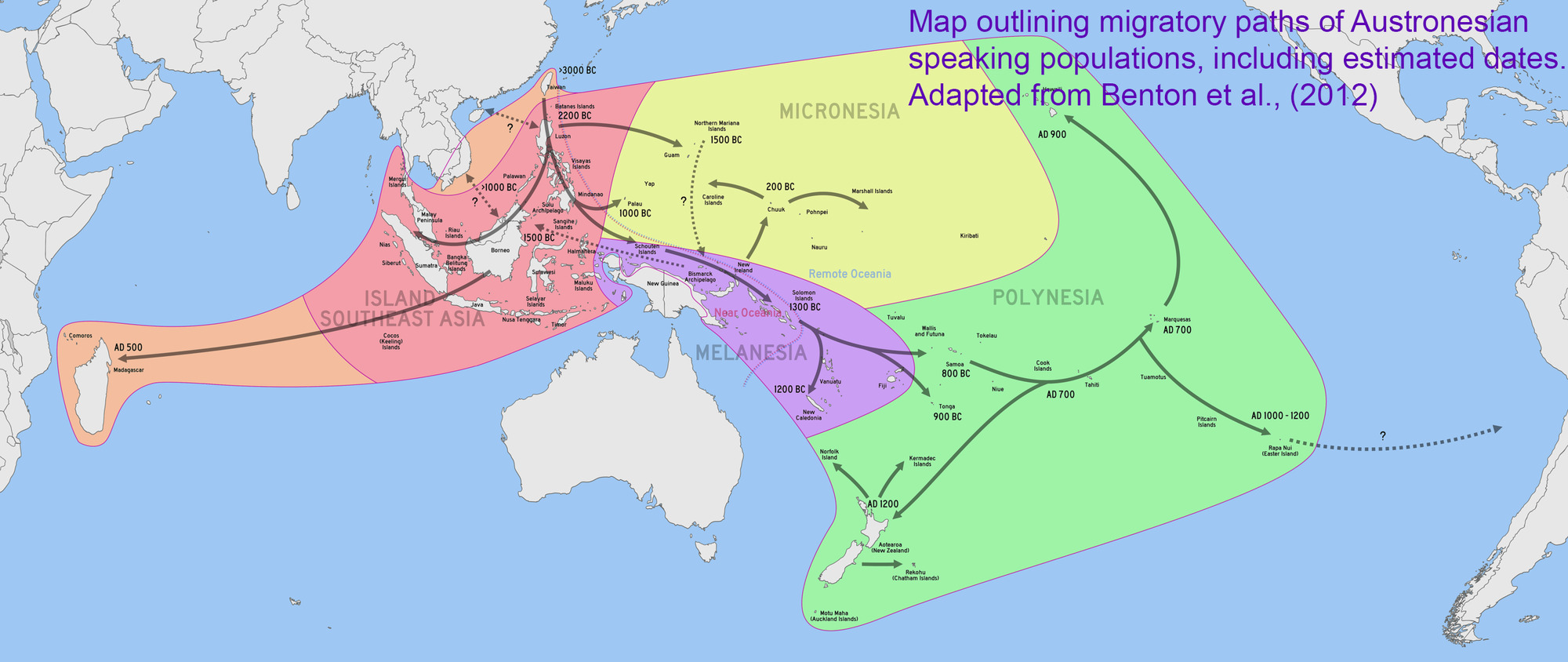 Melanesians are the predominant and indigenous inhabitants of Melanesia, in a wide area from the Maluku Islands, East Nusa Tenggara and New Guinea to as far east as the islands of Vanuatu and Fiji. Most speak either one of the many languages of the Austronesian language family, especially ones in the Oceanic branch, or from one of the many unrelated families of Papuan languages. Other languages are the several creoles of the region, such as Tok Pisin, Hiri Motu, Solomon Islands Pijin, Bislama, Ambonese Malay and Papuan Malay. (Wikipedia, retrieved 2022)