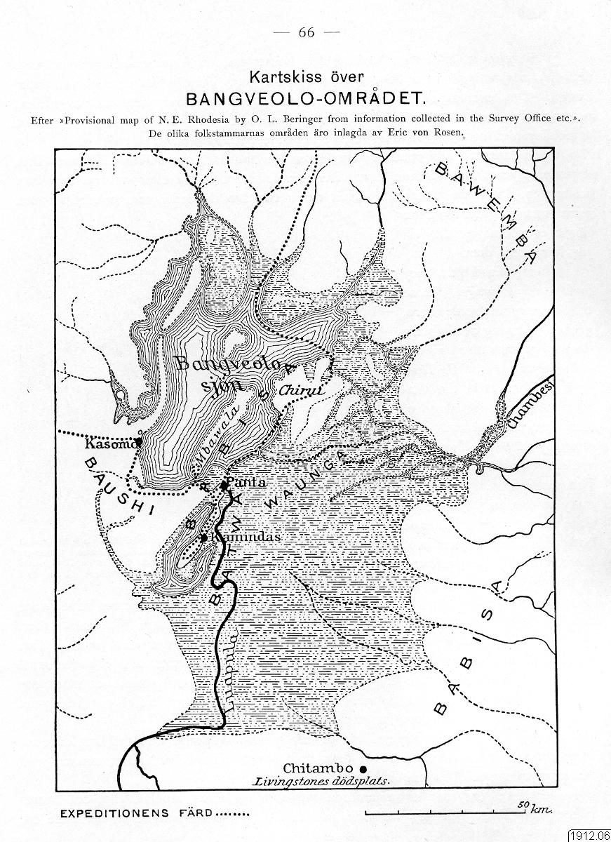 Svenska Rhodesia-Kongo-expeditionen 1911-1912. Eric von Rosen, Robert Fries deltog. I Zimbabwe anslöt en tysk farmare, herr Schade. I nuvarande Zambia dokumenterade von Rosen ett dittills okänt träskfolk, som han kallade "batwa". De bodde på gungflyen i Bangveolo-sjön.