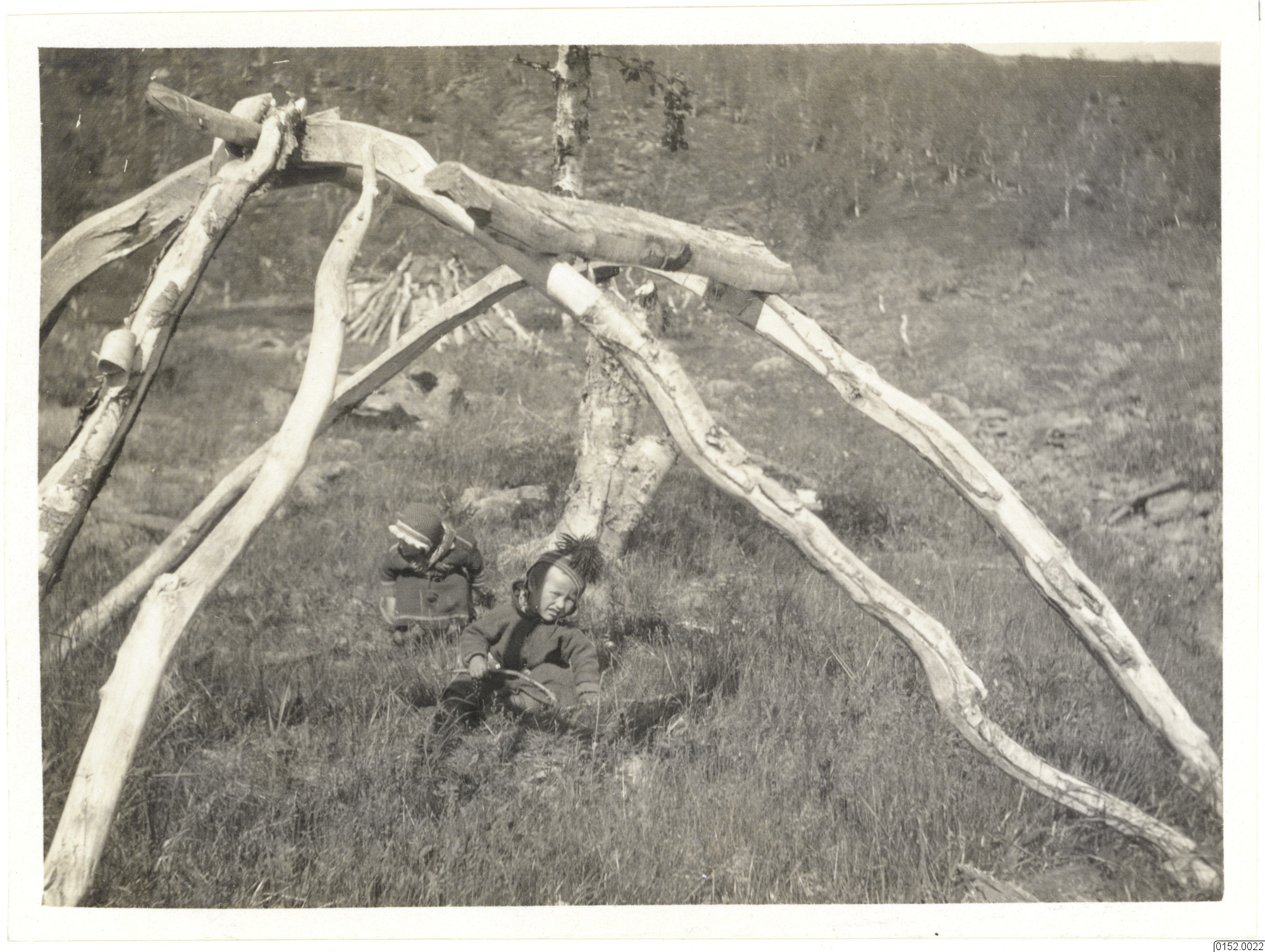 - Lekande barn under en kåtastomme. Karesuandol:r. (katalogkort)