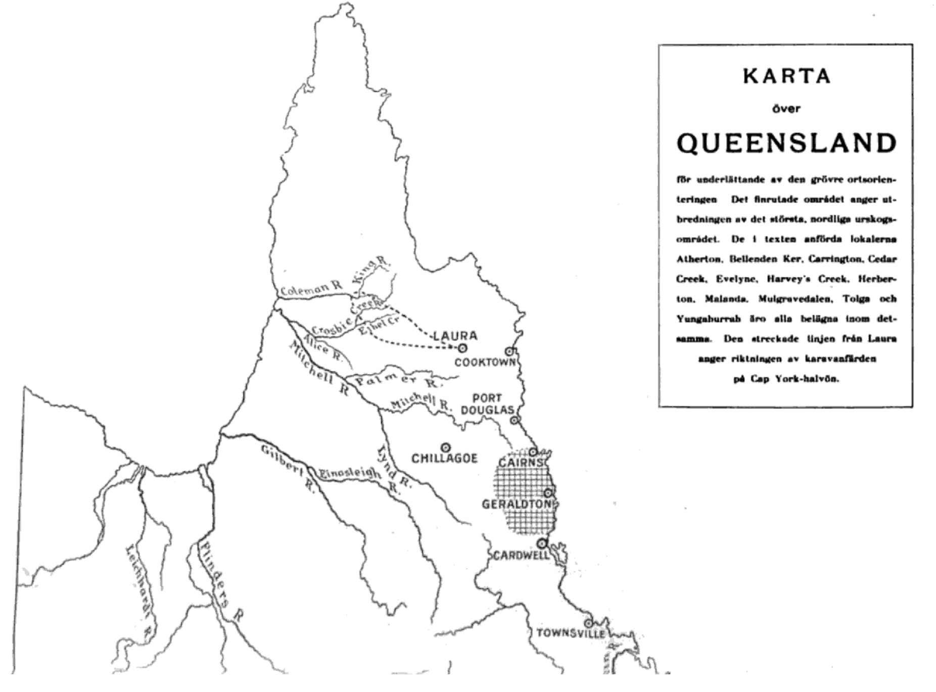 De grupper av Australiens aboriginer som fanns i området var dyirbal och särskilt de grupper som talade dialekterna jirrbal, mamu och ngajal. Mjöberg var även i Mulgravedalen där Mulgravefloden rinner och där yidiny fanns. Mjöberg var kritisk till hur urinvånarna behandlades och att de inte fick förutsättningar att fortsätta sitt traditionella liv. Inte minst var han kritisk till missionärernas verksamhet.