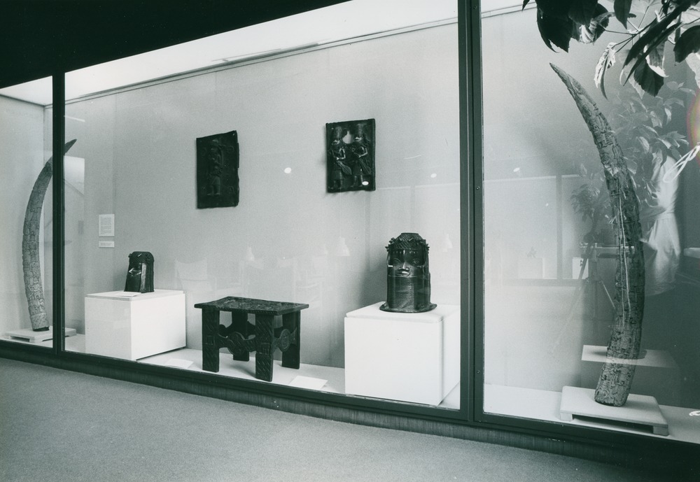 Utställningstext STADEN (kopplat till föremålet): Det kungliga palatset var också platsen för en av de mest fascinerande konstformerna i Benin- rektangulära bronstavlor med avbildningar i relief av personerr och händelser i det ceremoniella livet vid hovet. Omkring 900 sådan relieftavlor finns kvar i världen idag och sägs i det gamla Benin ha hängt uppspikade på de takbärande pelarna i palatset, där de bildade en imponerande fond för de hovceremonier de delvis också avspeglar.