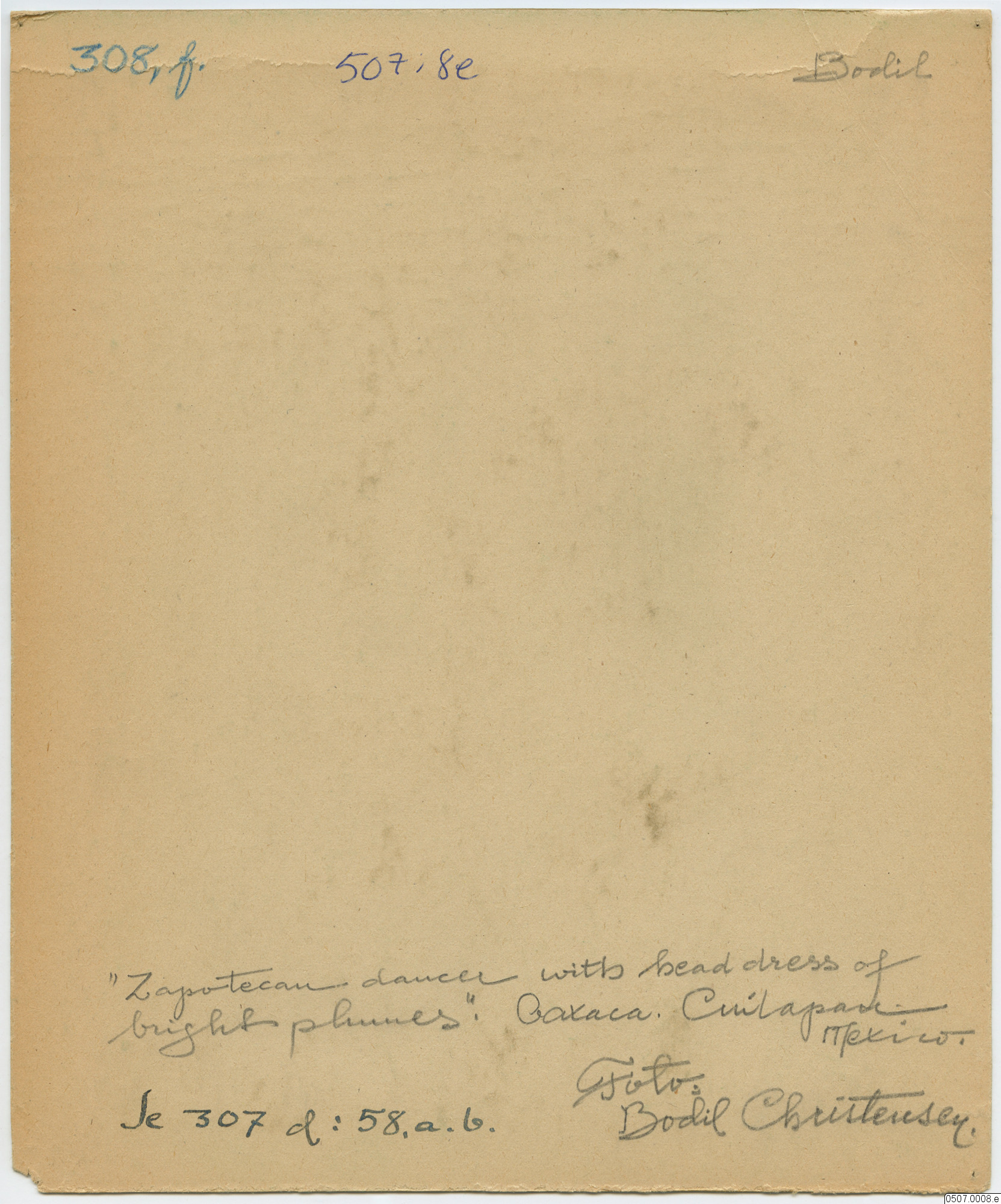 Bodil Christensen, född 25 december 1896, Holbæk (Holbæk, 4300, Danmark), död 27 mars 1985, San Filipe (San Filipe, Oaxaco, Mexico). Fröken, Mexico D.F.