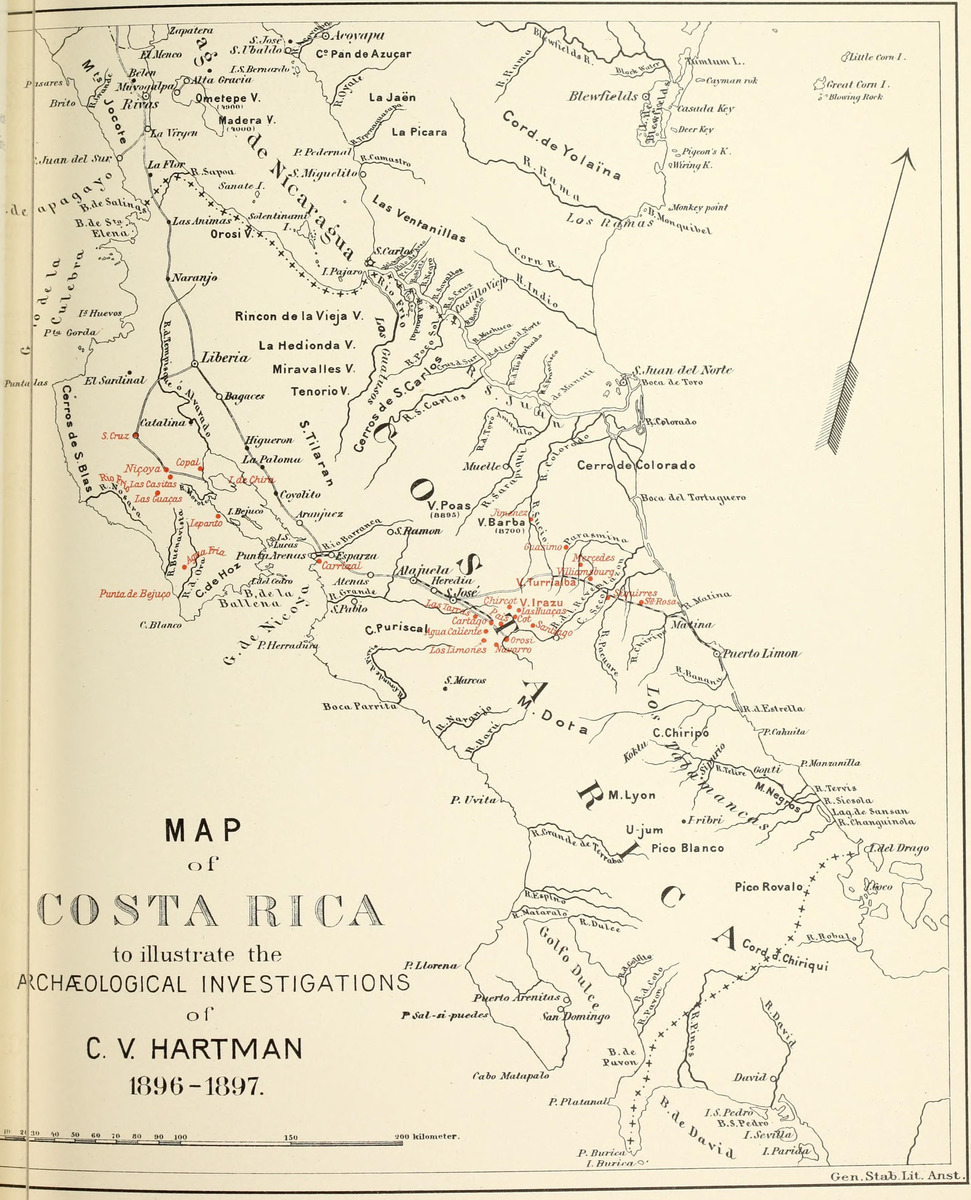 - Carl V. Hartman företog etnografiska-arkeologiska forskningsfärder, delvis med stöd av Vega-stipendiet, 1896-99 till Costa Rica, El Salvador och Guatemala.1896-97 utförde han utgrävningar i Costa Rica. Över 400 gravar undersöktes. Expeditionen och grävningarna stöddes av Åke Sjögren, Mälsåker. I Guatemala och El Salvador samlade han etnografika.