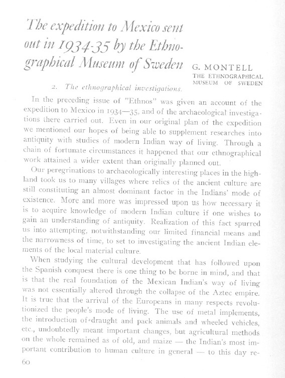 Montell, Gösta (1936) The Expedition to Mexico. Ethnos Vol.1, no. 3.