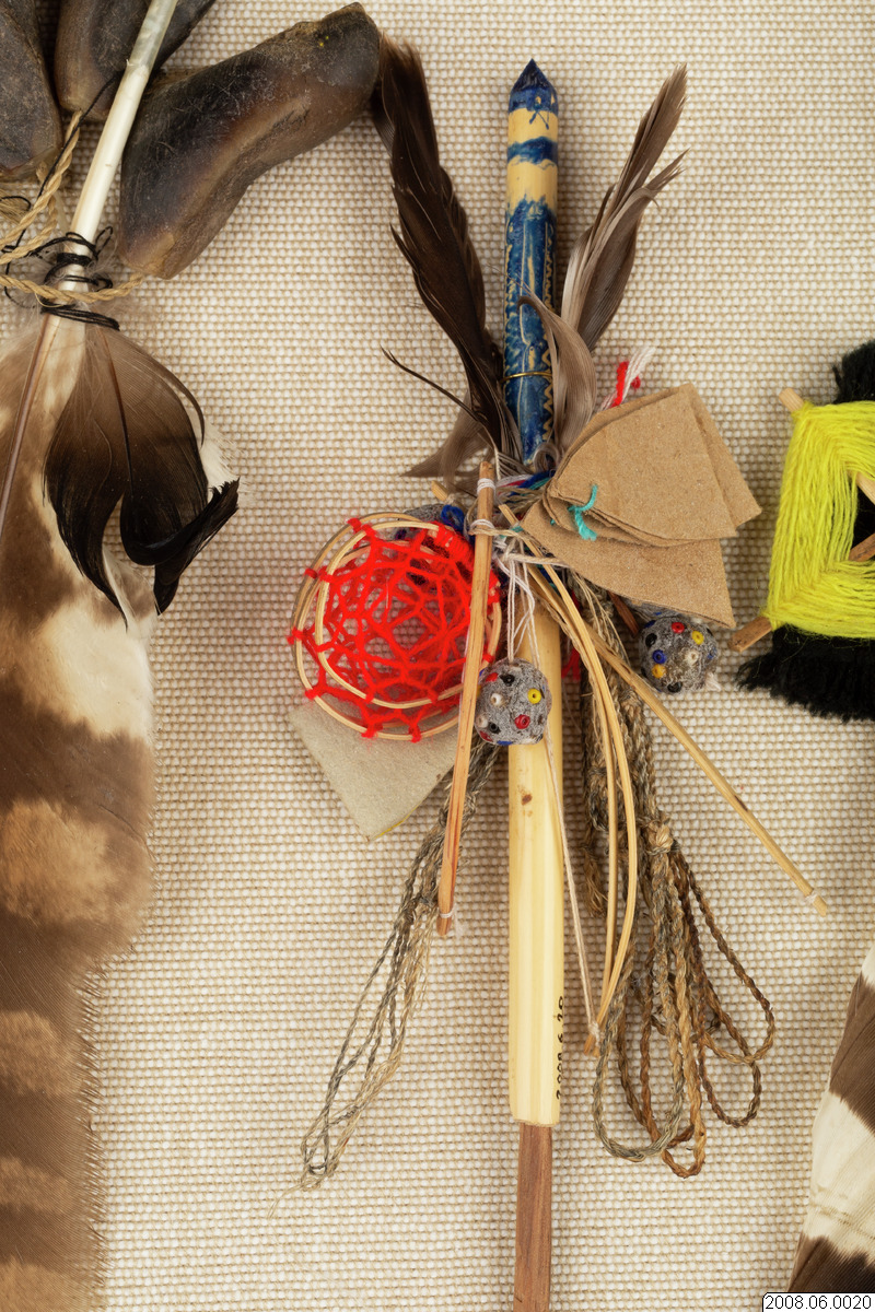 Slutligen även tre Yari, symboliska kulor. Av vax och dekorerade med färgglada pärlor. Symboliskt ”hjärta” i betydelsen centrum för andlig vitalitet, känslosamhet, hängivelse till traditioner. En annan är testiklar, fruktsamhet, önskan om god skörd.