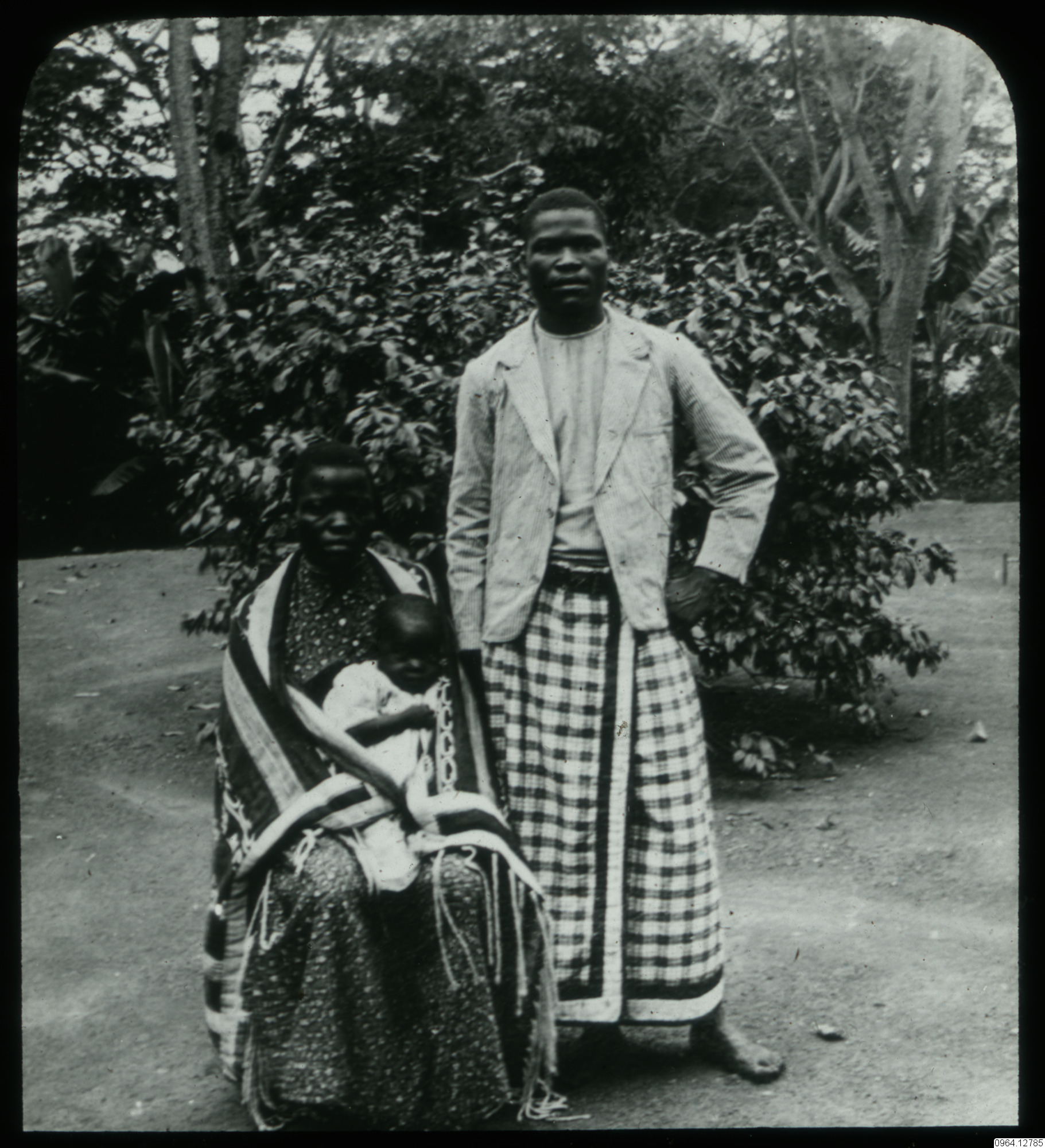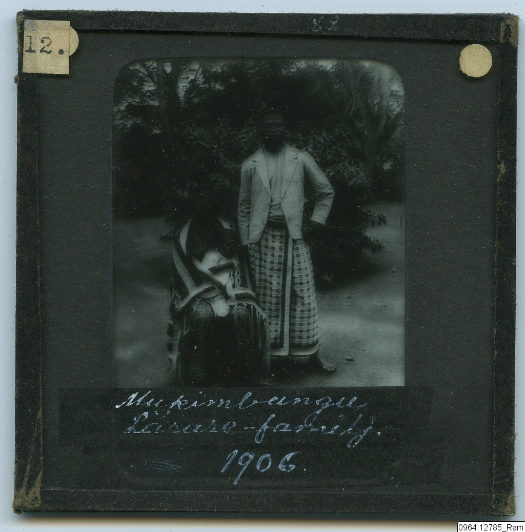 - Lärarfamilj, Kunzi? Kvinna sitter med barn, man står.