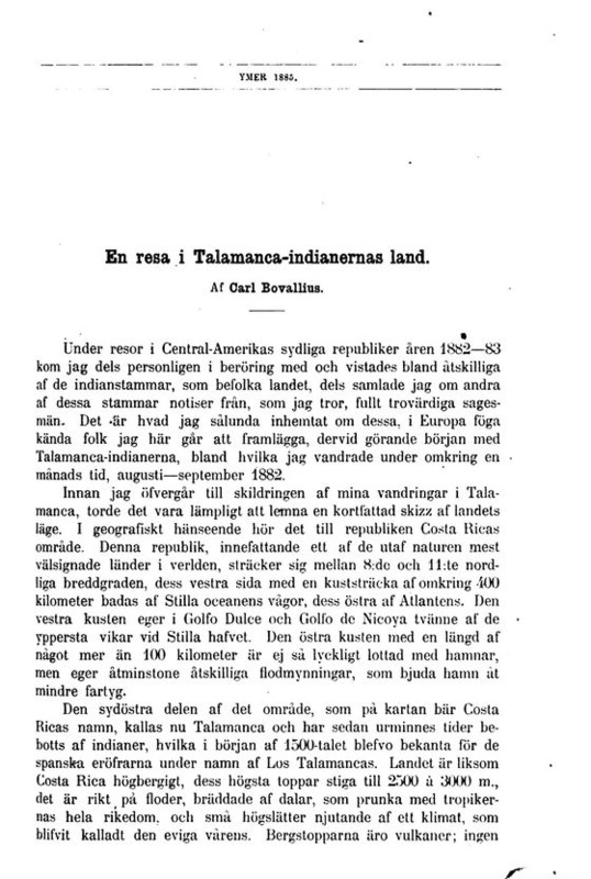 - Bovallius, Carl (1885). En resa i Talamanca-indianernas land. Ymer, S. 183-216