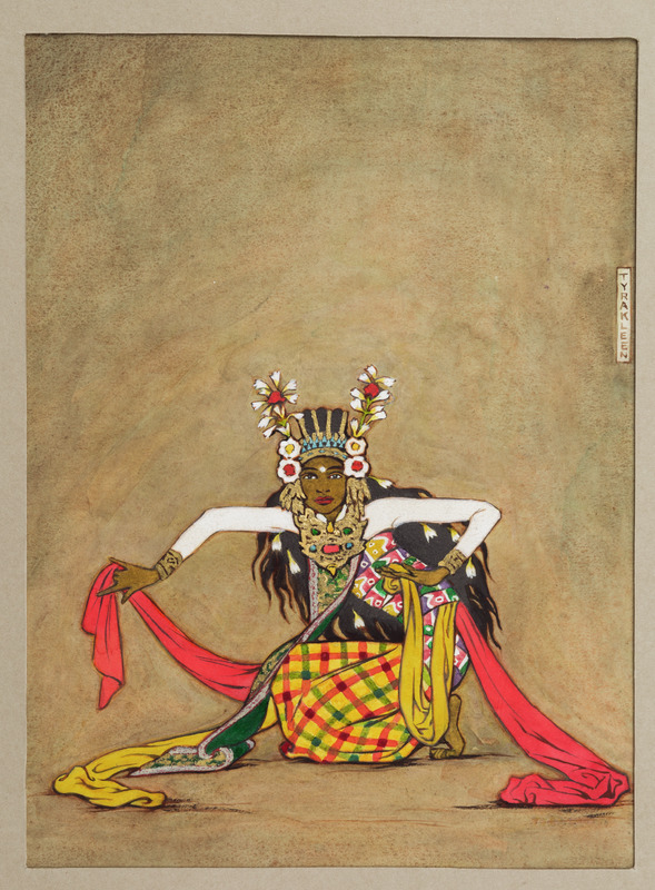 Om denna akvarell (liksom om nr. 1972.08.0266) säger Walter Spies (The Temple Dances in Bali, Bij Tyra de Kleen i Djåwå, Tijdschrift van het Java-Instituut, Java-Instituut, Jogjåkartå, (Java) N.O.I. 1939, s. 35) ”Bilden föreställer kanske en ”Ardja” (Arja) utom att det finns några felaktigheter i kostymerna”.