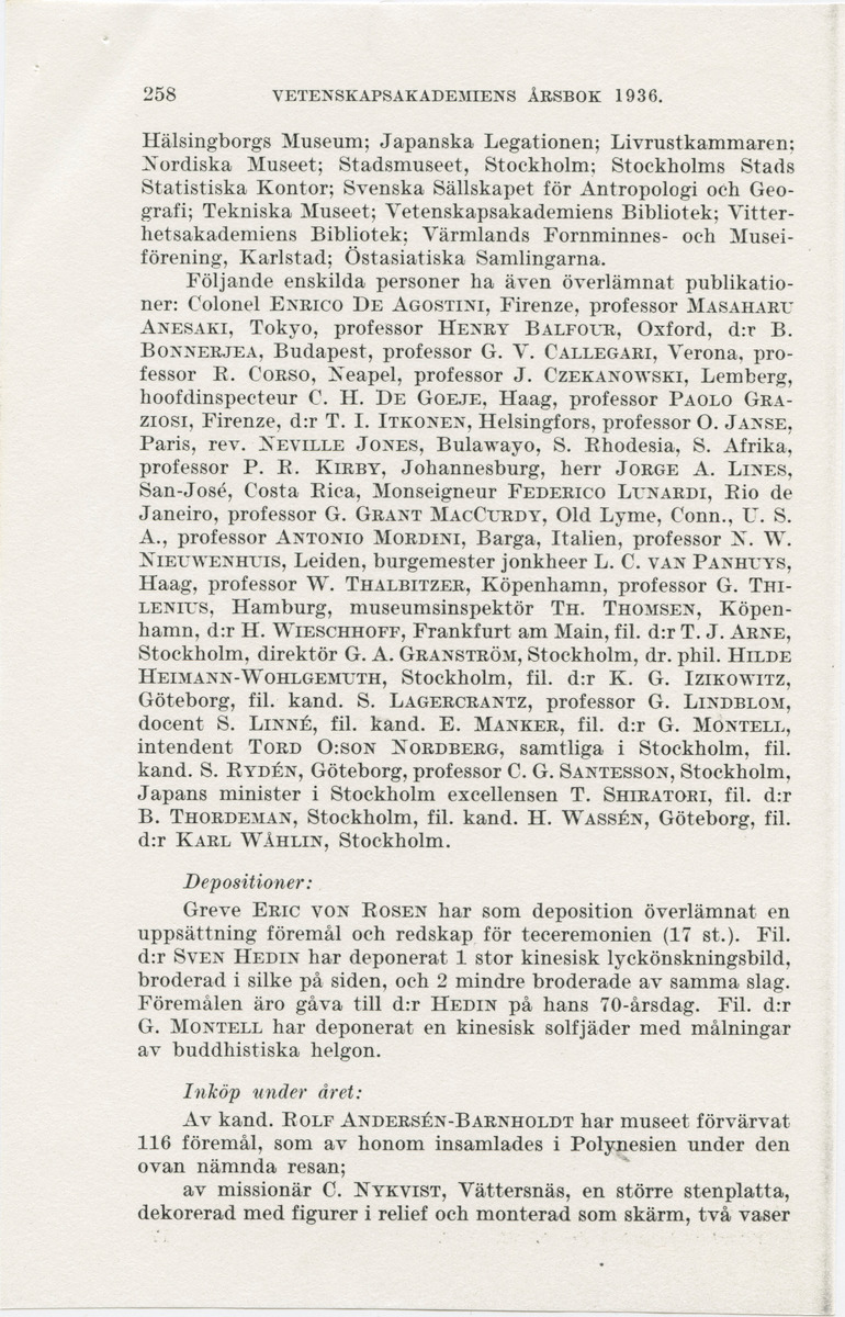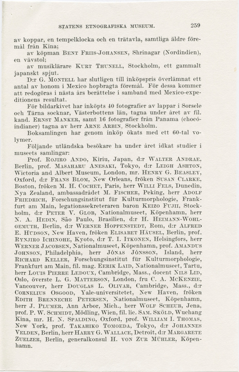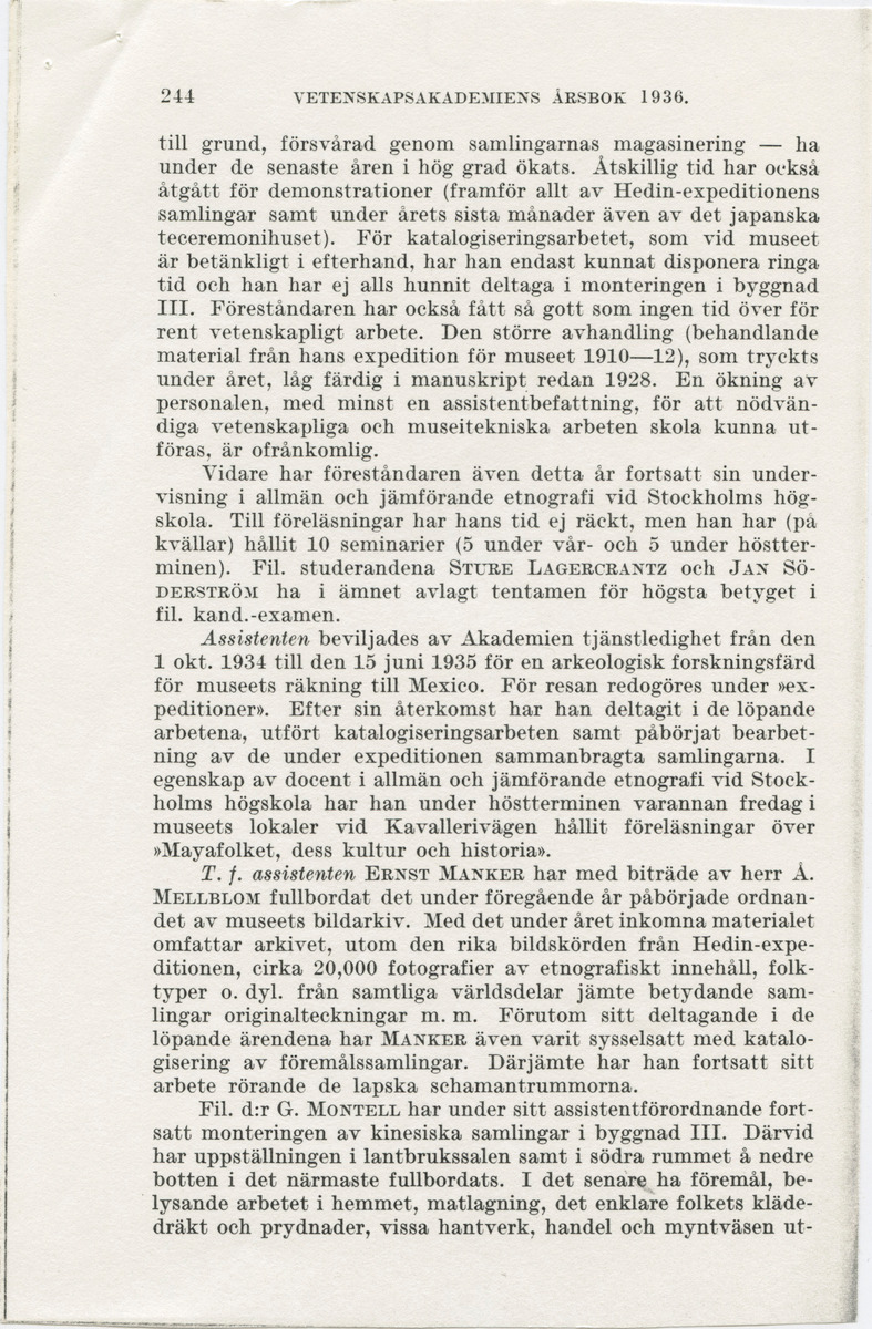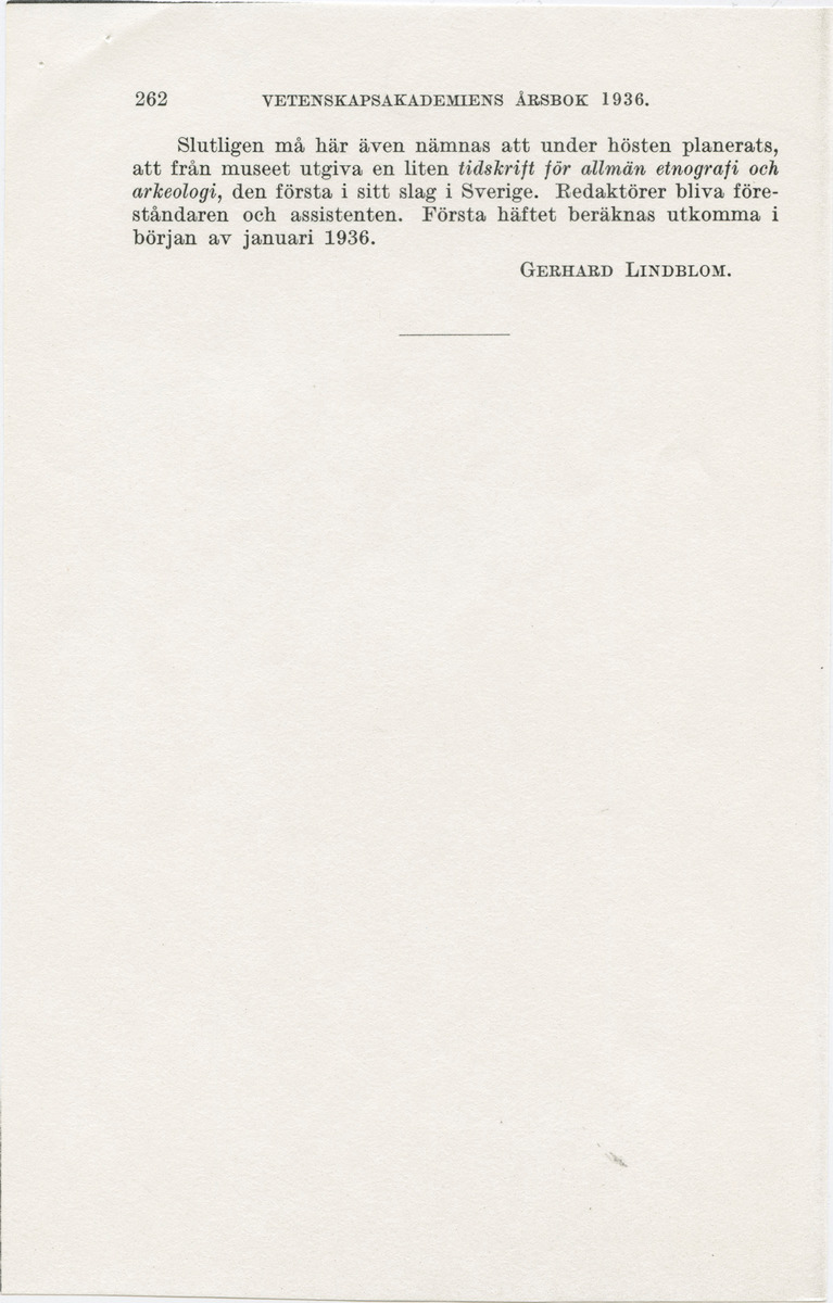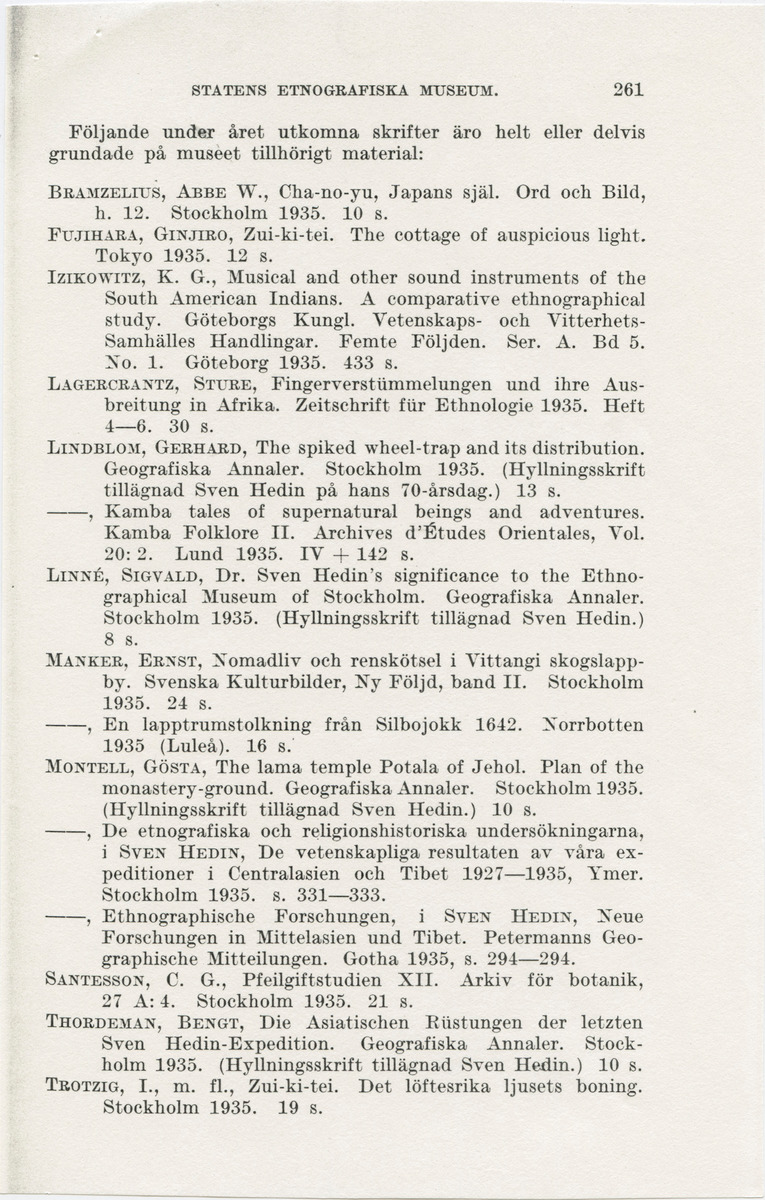 - Årsberättelse för 1935 ur Etnografiska museets arkiv.
