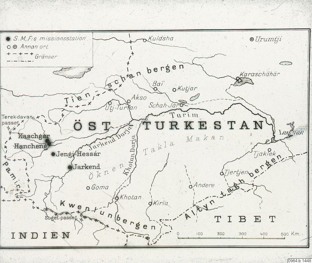 Karta, Öst-Turkestan, nuvarande Sinkiang/XinJan, Kina.
