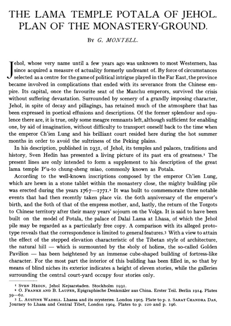 Montell, Gösta & Hedin, Sven (1935). The lama temple Potala of Jehol: plan of the monastery-ground. Stockholm: Esselte