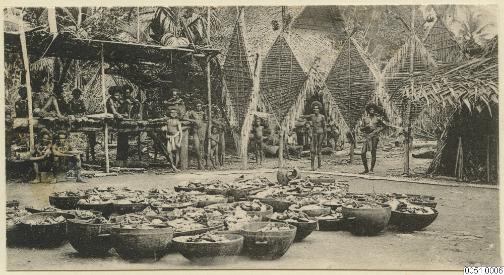 - Scen frånb en Papuaby. Ant.: Festessen in einem Papuadorf.