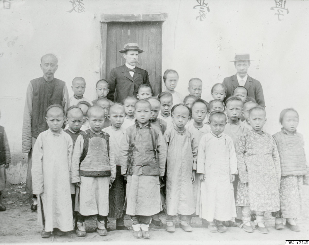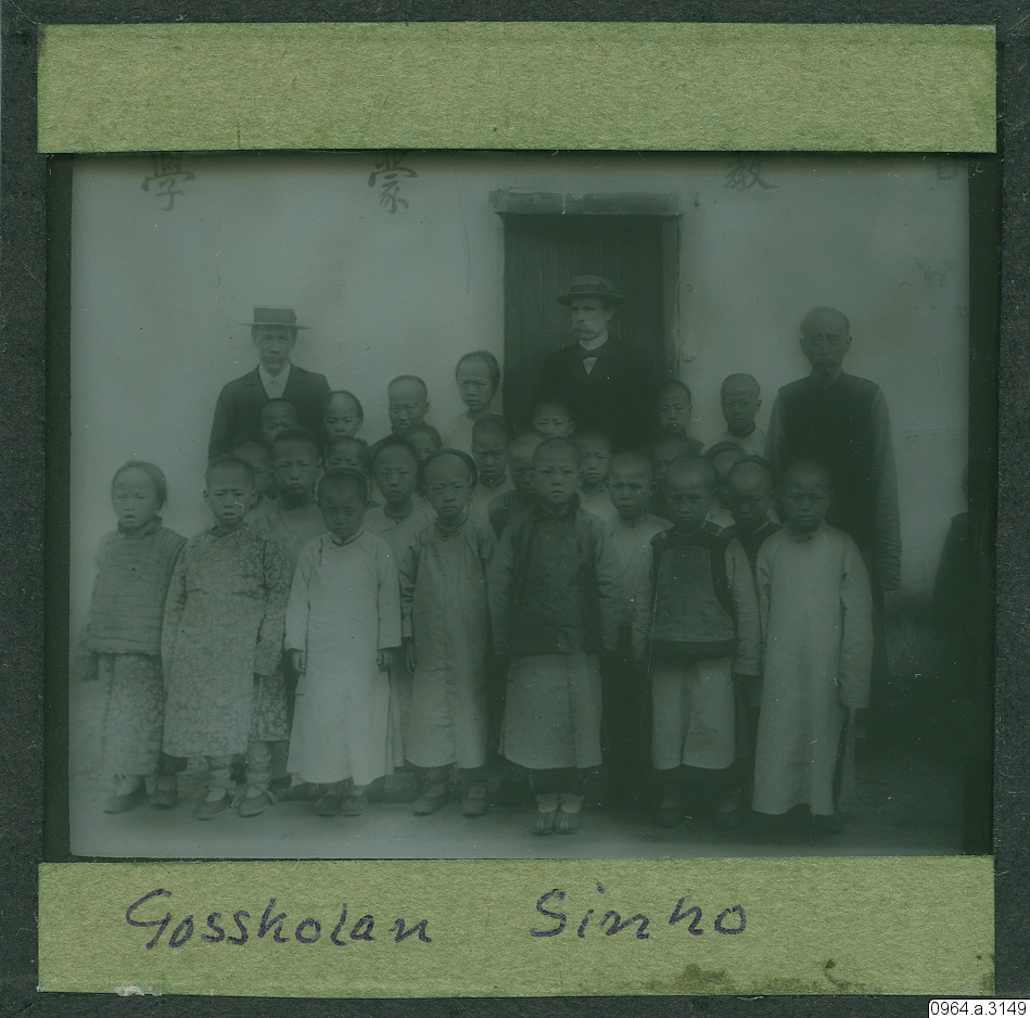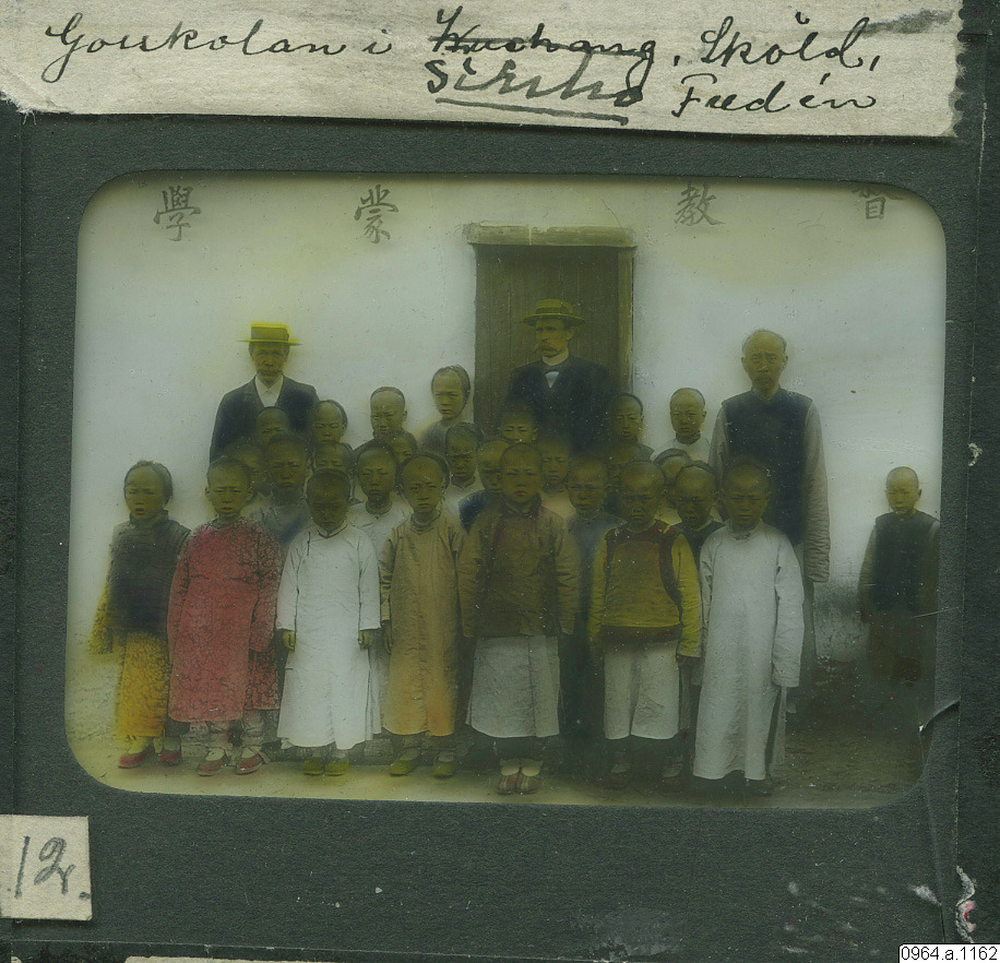 - Utanför gosskolan i Sinho. Sköld, Fredén.