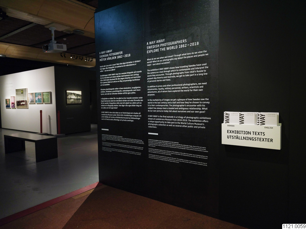 Utställningen A WAY AWAY visar hur 36 svenska fotografer på resande fot har betraktat och tolkat världen med kameran som verktyg. Från 1920-talets Ryssland till våra dagars Amerika och Australien får vi genom hundratals bilderna ta del av en lång rad personliga berättelser och levnadsöden.