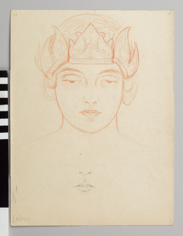 Porträtt i rödkrita av Beata van Helsdingen Schroevers iförd javanesisk javanesisk hovdansares (serimpi) huvudprydnad. Nedtill på arket ansiktsdetaljer (näsa och mun) i blyerts. Anteckning i blyerts Keloee? Dito i blyerts På baksidan dels en krokiskiss och en anteckning i blyerts ”Dewi Angreni Oud-Javaansche Legende, Declamatrice – Beata van Helsdingen –Schroevers: Dewi Anggreni är namnet på den välkände hjälten Panji Inu Kertapati’s älskade. Kärlekssagan återberättas i ett antal javanesiska krönikor, medeltida och senare. Berättelsen om Panji finns även spridd över andra delar av Sydöstasien. Declamatrice – Beata van Helsdingen –Schroevers, Declamatrice syftar på Tyras uppdragsgivare, journalisten Beata van Helsdingen Schoevers, som reste runt på Java och uppträdde på deklarationsaftnar för den koloniala societeten Se: Vilan van de Loo Leven Tussen Kunst en Krant, Beata van Helsdingen-Schoevers (1886 – 1920) Journaliste en declamatrice in Indiê. Biografie 2004. Odaterad.