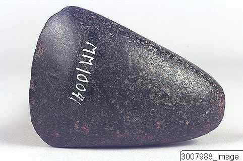 - A votive axe, rounded edge, tapering at one end. Black stone.