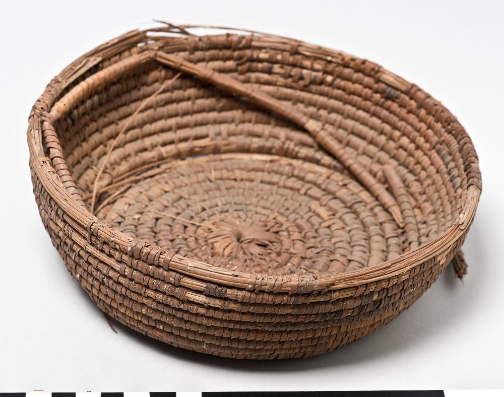 - Circular basket with tall walls. Narrow handle.