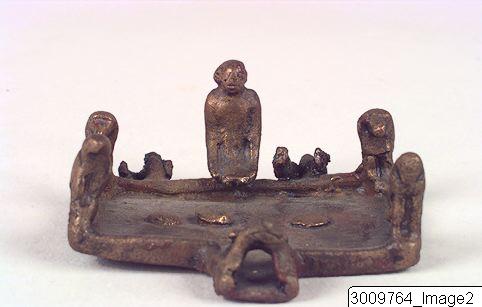 - An offering scene featuring an enclosure with a frog, two falcons, two baboons and a kneeling man.