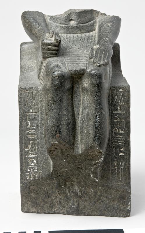 - Sculpture of a man sitting in a chair. Hieroglyphs around the chair. The owner is the house keeper Ibu. A house keeper named Hetepui is also mentioned.