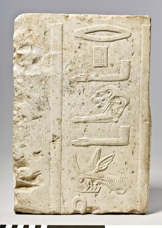 - Tomb relief with an inscription in raised relief: rp´ h3tj-´ (sd3wtj) bjtj.