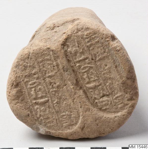 - Funerary cone with four vertical rows of hieroglyphic inscription.
