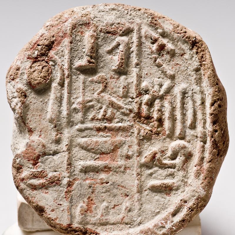 - Stamp seal with three vertical lines of inscriptions. Belongs to the King of Kusch´s son, mr-ms.