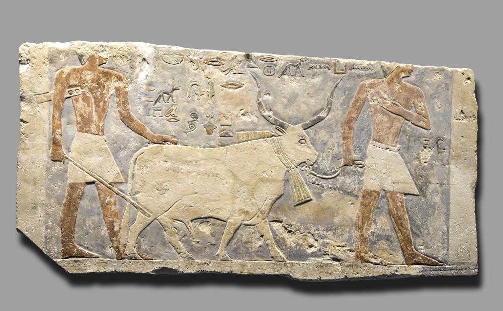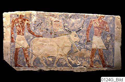 - Fragment of a relief. Two men with a bull.