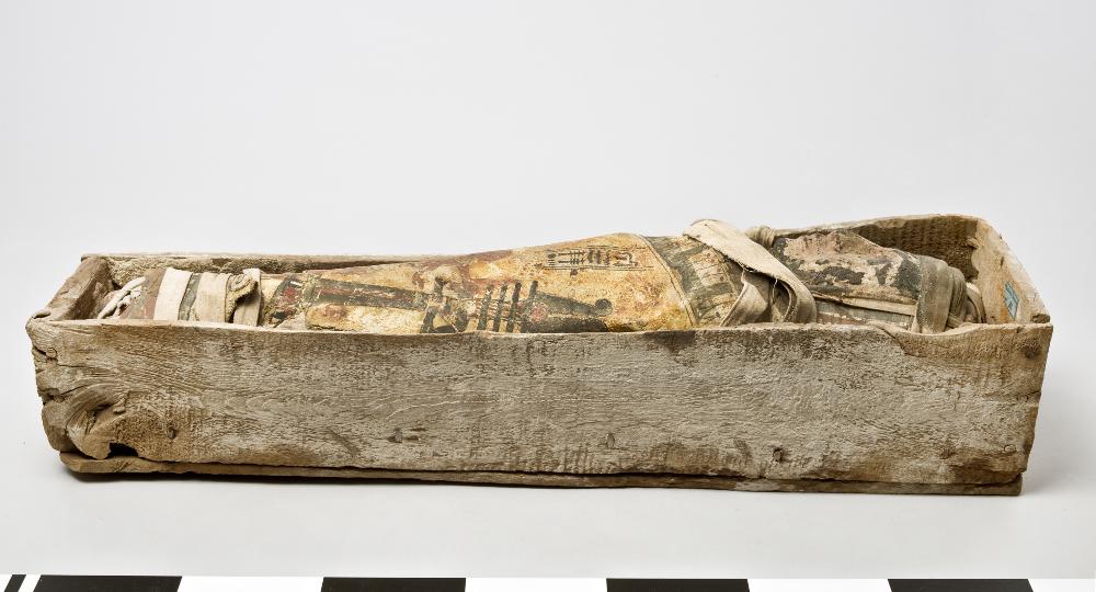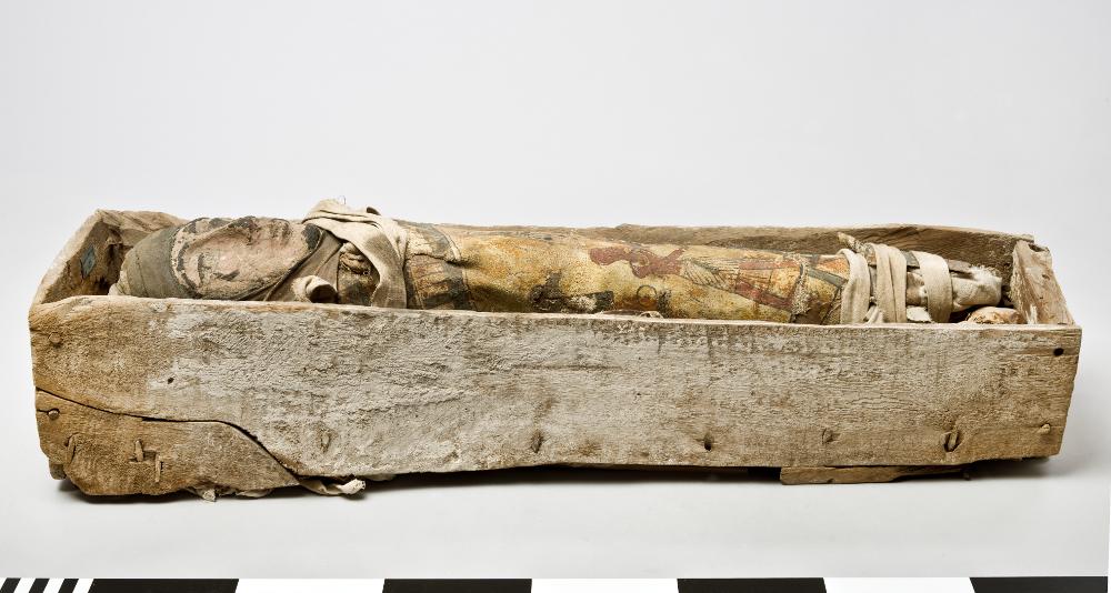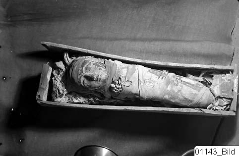 The Egyptian Exhibition contains, in addition to mummified humans, also mummies of cats, birds, fishes and snakes. The Goddess Isis with the child Horus in her lap meets the visitors as they enter the exhibition. The pose she holds occurs commonly in western art where the Virgin Mary with the child Jesus often is portrayed in the same position.