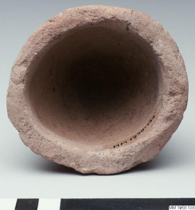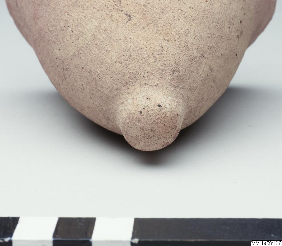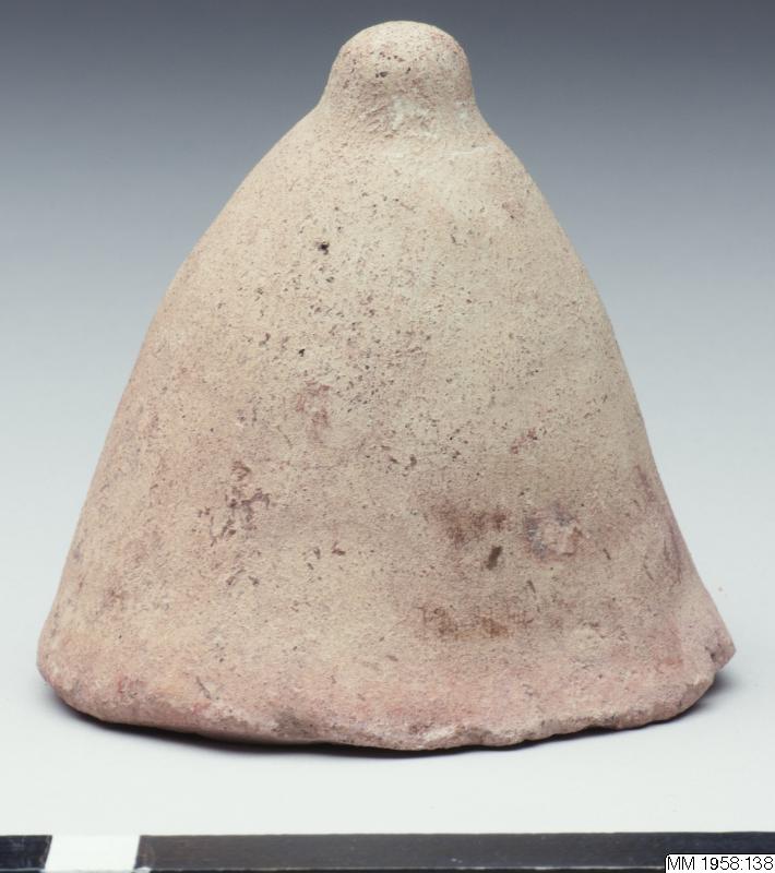 - Moulded breast; conical with large nipple at top; hollow. Very pale brown clay.