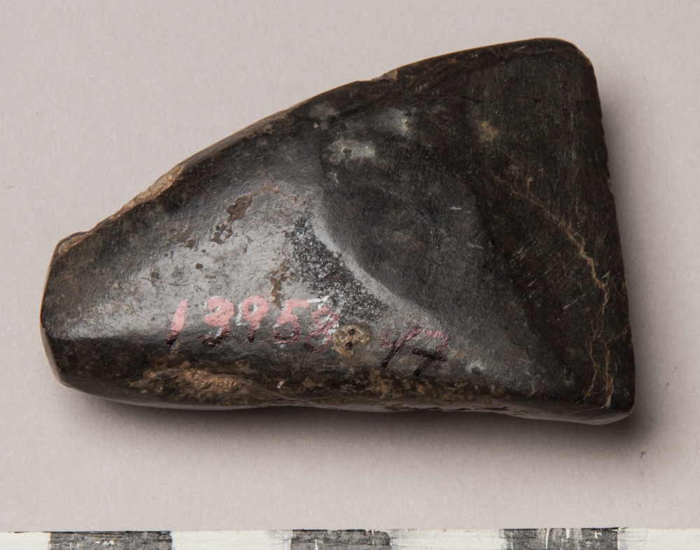 Smoothly polished axe. Straight cutting edge and narrow, sharp top.