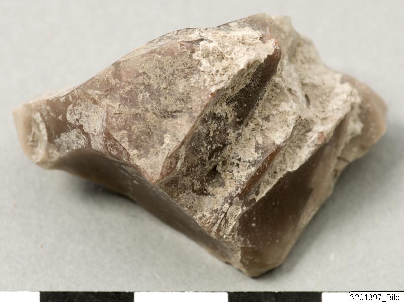 - Irregular. Lustrous, light and brownish red flint.