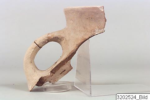 - Two fragments of an amphora; short, wide concave neck; plain rim; oval handles from shoulder.