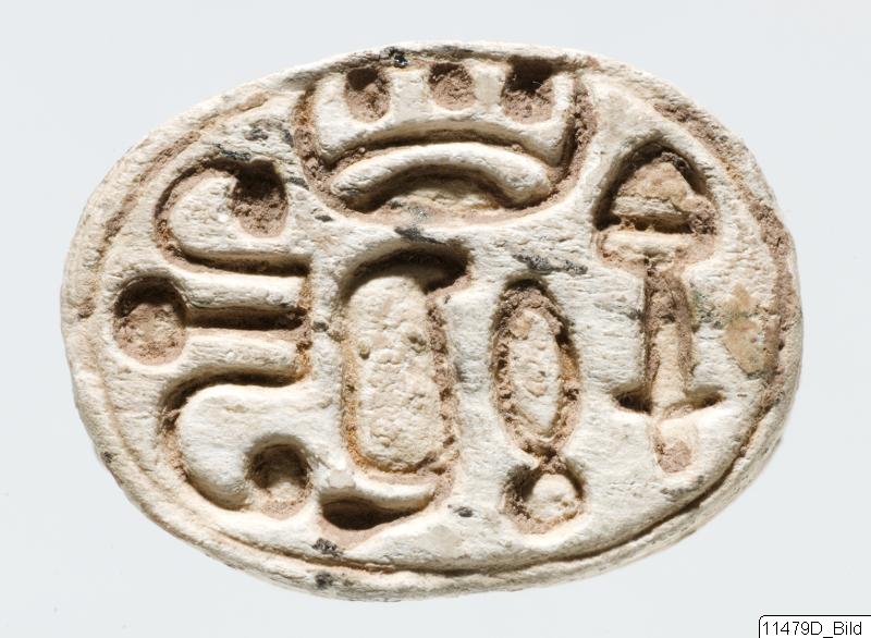 - Scarab of white steatite.
