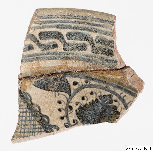 Ware: Italian, Spanish or North African tin glazed (needs precision, but more likely Hafsid).