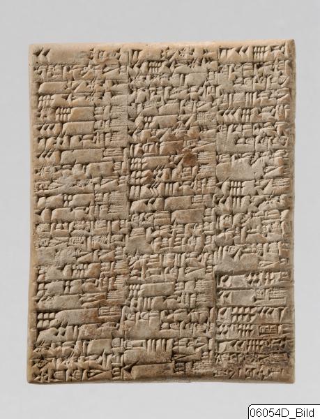 Sumerian administration document from the city PD = Puzri¸s-Dagan.“Livestock from Urkununna received by various individuals.”; Year account. Translation: Obv. I: 20 female kids, Nur-Adad received; 1 two-year-old ox, 8 two-year-old cows, 49 grass-fed sheep, 31 grass-fed ewes, 161 grass-fed full-grown goats, 31 lambs,for the bala service, Lugal-Utu received; 125 grass-fed sheep, 11 grass-fed full-grown goats, for E2.AB of the god Enlil, Lugal-azida, the ¯Sabra administrator, received; 259 grass-fed sheep, 244 grass-fed full-grown goats, 30 grass-fed she-goats, 7 lambs, 103 goats, for the bala service, Aradmu, the governor of the city of Girsu, received;